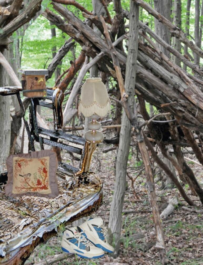 Auch für Alois Mosbacher ist der „Wald“ ein zwiespältiger Topos der Kunst- und Ideengeschichte. Seine gemalten (Wald-)Landschaften haben wenig gemein mit dem traditionellen Naturidyll: Verschwunden sind die Bewohner des Waldes, und die Bäume, aus diversen Stämmen und Ästen kompiliert, stiften Verwirrung. Mosbachers Malerei ist scheinbar narrativ, die Bilderzählung treibt die Assoziationen des Betrachters in viele Richtungen, absurde, surreale, tief finstere.