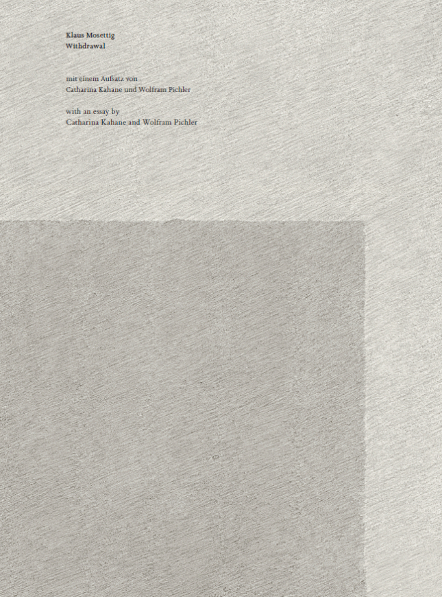 Klaus Mosettigs Zyklus „Withdrawal“ ist eine zeichnerische Auseinandersetzung mit Josef Albers' Serie „Homage to the Square“. Mit Bleistiften unterschiedlicher Härte schafft er mimetisch exakte Doppelgänger der Albers'schen Vor-Bilder, in Tonwerten zwischen Schwarz und Weiß. Nach seinen zeichnerischen Remakes der drippings Jackson Pollocks arbeitet er nun mit den kalkulierten, geometrisch geregelten Anordnungen in den Bildern von Josef Albers, vertreibt allerdings, nach der Vernichtung der Spontaneität Pollocks, hier die Albers'schen Farben und ihre Gefühlswerte. Mosettigs unendlich langsame, unendlich genaue Abzeichnungen sind meditative Exerzitien, die dem Betrachter anbieten, sich in der langsamen Kunst der subtilen Differenzwahrnehmung zu üben.