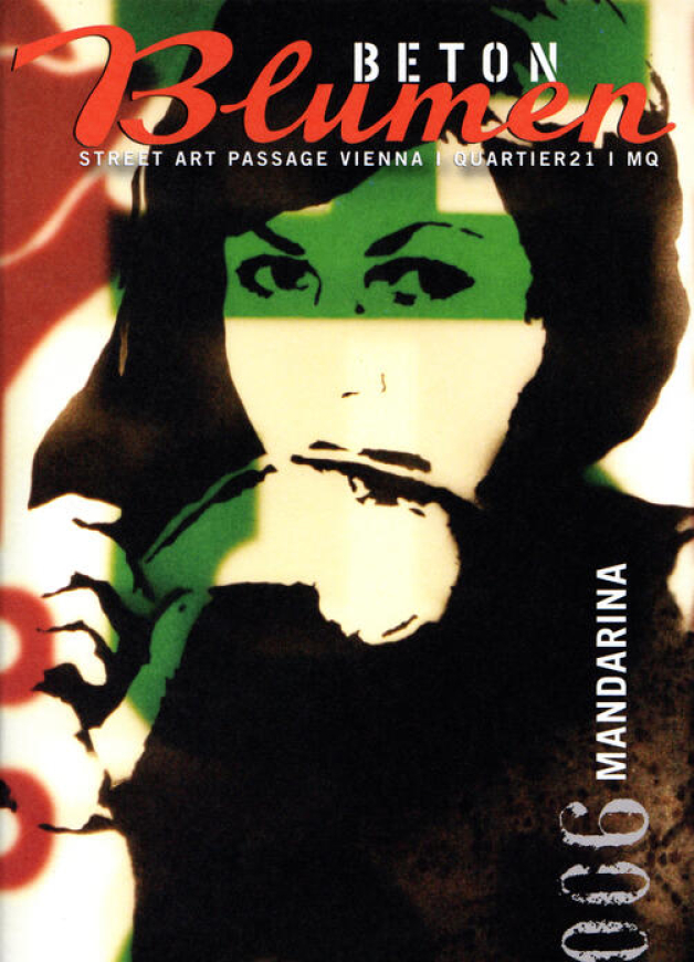 Mandarina Brausewetter was one of the first spraying artists in Vienna who distributed stencil graffiti in the city's public space. For the characters she uses her own drawings, photography, partly with herself posing for them, as well as image material from the mass media.
