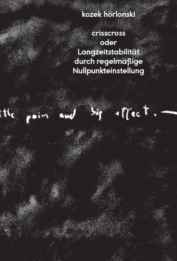 The book is designed to be a material as well as immaterial image-archive of the artists. Reading and observing it, it becomes a multi-perspective and dynamic body of work. Similar to the performances of kozek hörlonski, the audience gets involved as active participant. The provoking double-structure of the publication multiplies the perception of the performances. The complex as well as stunning graphic concept is designed by Johannes Lang.