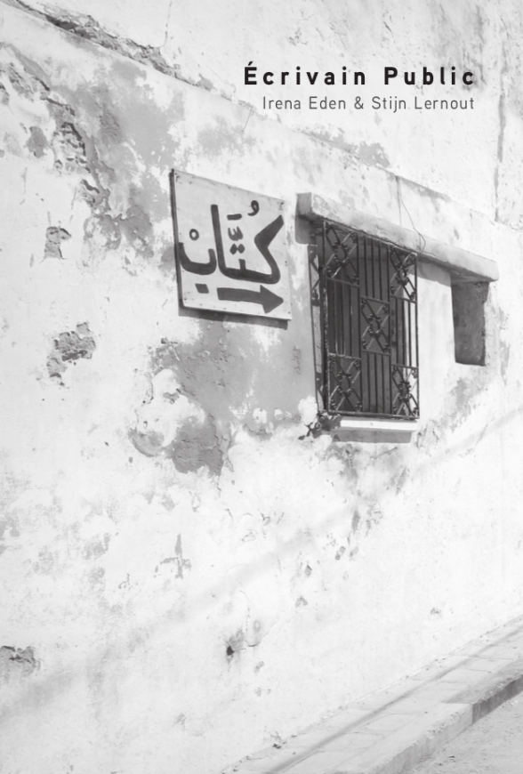 Irena Eden and Stijn Lernout travel through Tunisia in search of the Écrivains Publics. Also known as lawyers for the poor, the Écrivains Publics write letters of complaint, petitions, applications and everyday correspondence for city dwellers. They are masters of writing, but also social and life counselors who deal with people far more intensively than one might expect. Irena Eden and Stijn Lernout ask the Écrivains Publics, whom they visit in their offices, to write their own text that tells something about life in their city. Photographs of city scenes are juxtaposed with the resulting texts, which convey the hopes of Tunisians after the Arab Spring as well as their self-confidence and concern for the common good.